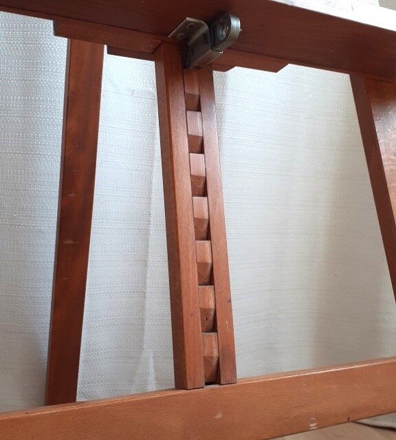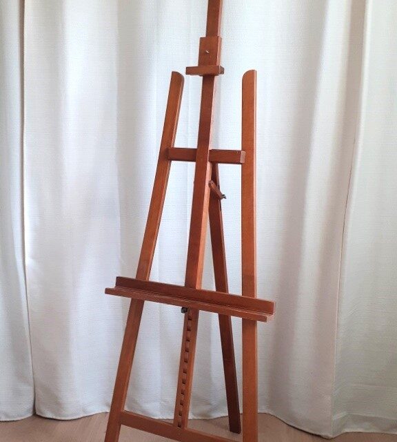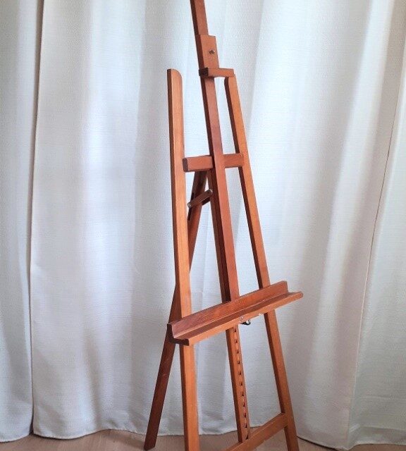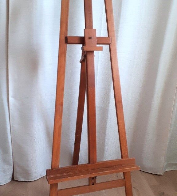 Chevalet en bois de hêtre, enduit d’huile de lin. Solide, robuste, de qualité. Il peut être replié.
