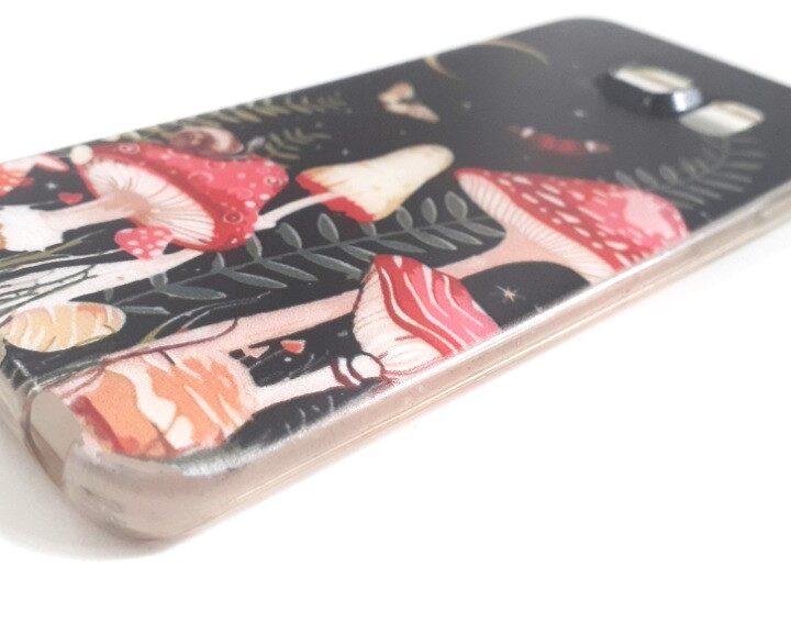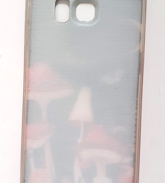 Coque champignons pour téléphone portable Samsung Galaxy S6 Edge. Bords arrondis. Il a été utilisé, mais il est encore en très bon état. Je vends d’autres coques pour ce modèle de téléphone.Prix : 3€