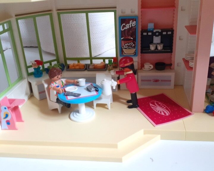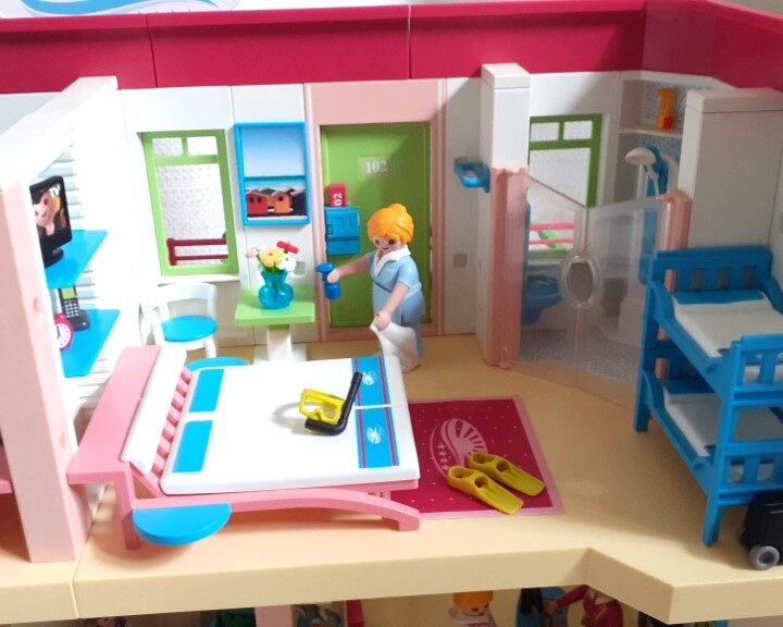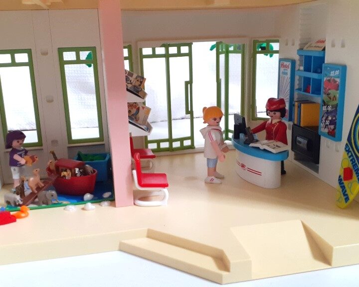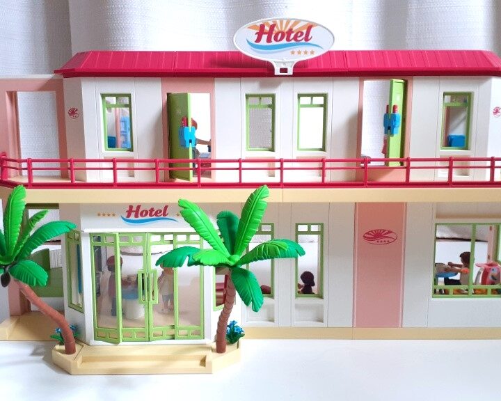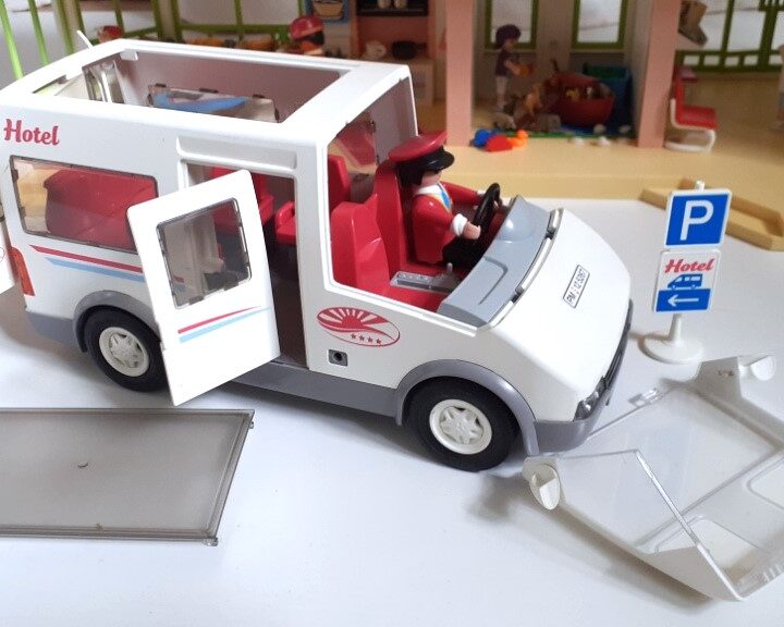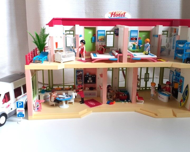 Playmobil Grand Hôtel Summer Fun 5265 et le mini-bus de l’hôtel 5267. Propre et en très bon état général. Longueur 68cm. Largeur 25cm. Hauteur 34cm. Très bon état général. Vendu avec les 9 figurines et tous les accessoires visibles sur les photos. Je ne fais pas d’envoi pour cet article. Je vends aussi un grand bateau pirate Playmobil.