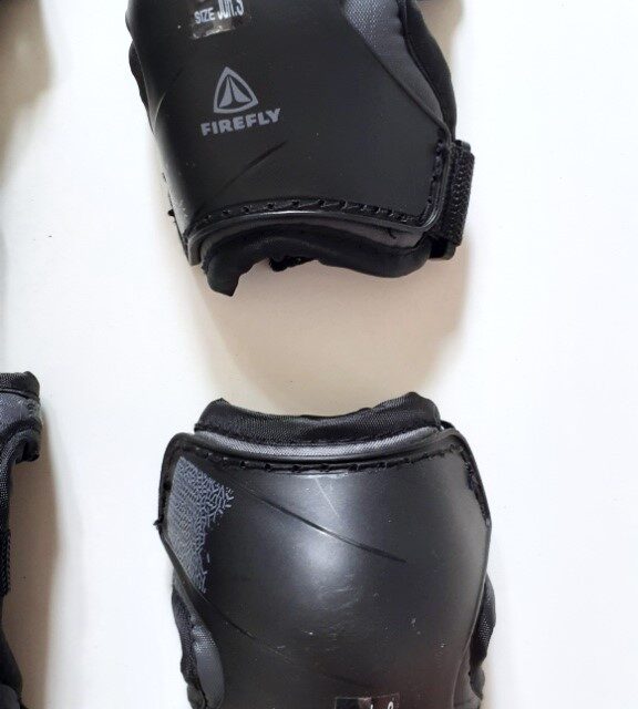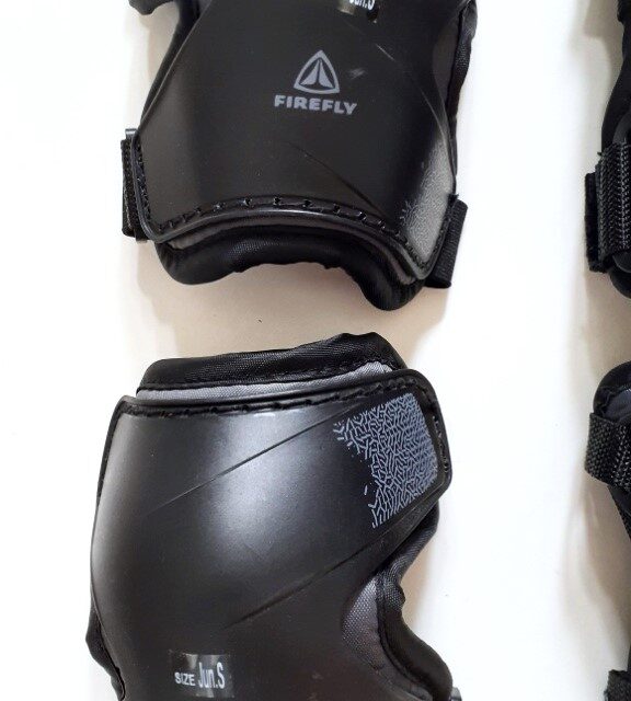 Set de protections contenant protège poignets, coudières et genouillères. Convient pour vélo ou rollers, taille S pour enfant (correspond à 4-9 ans, poids entre 18 et 25 kg). Marque Firefly Intersport. En très bon état.Prix : 8€