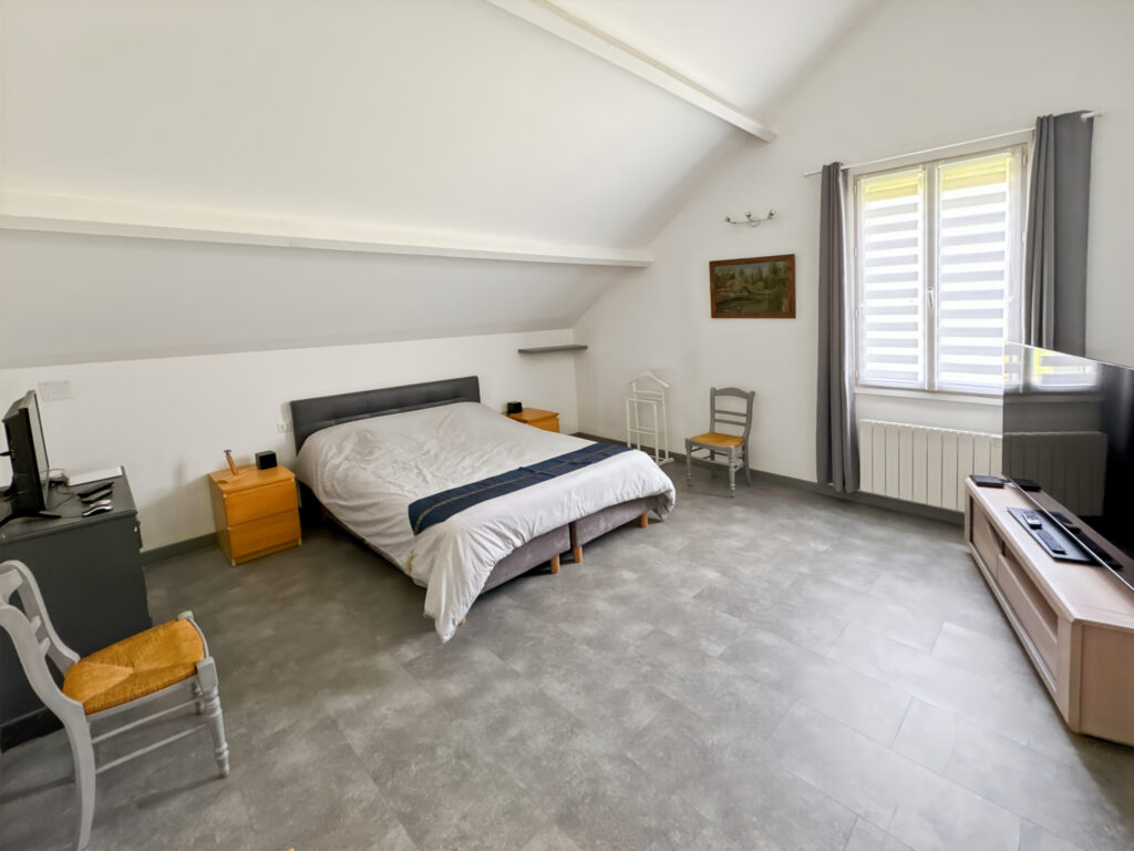 Au second étage : dégagement couloir, trois chambres dont une suite parentale, une salle d’eau, une salle de bains, un cabinet d’aisance et un dressing.