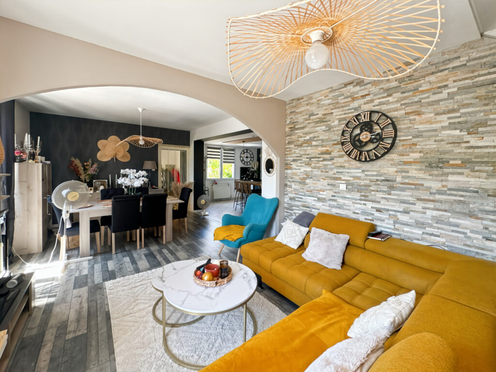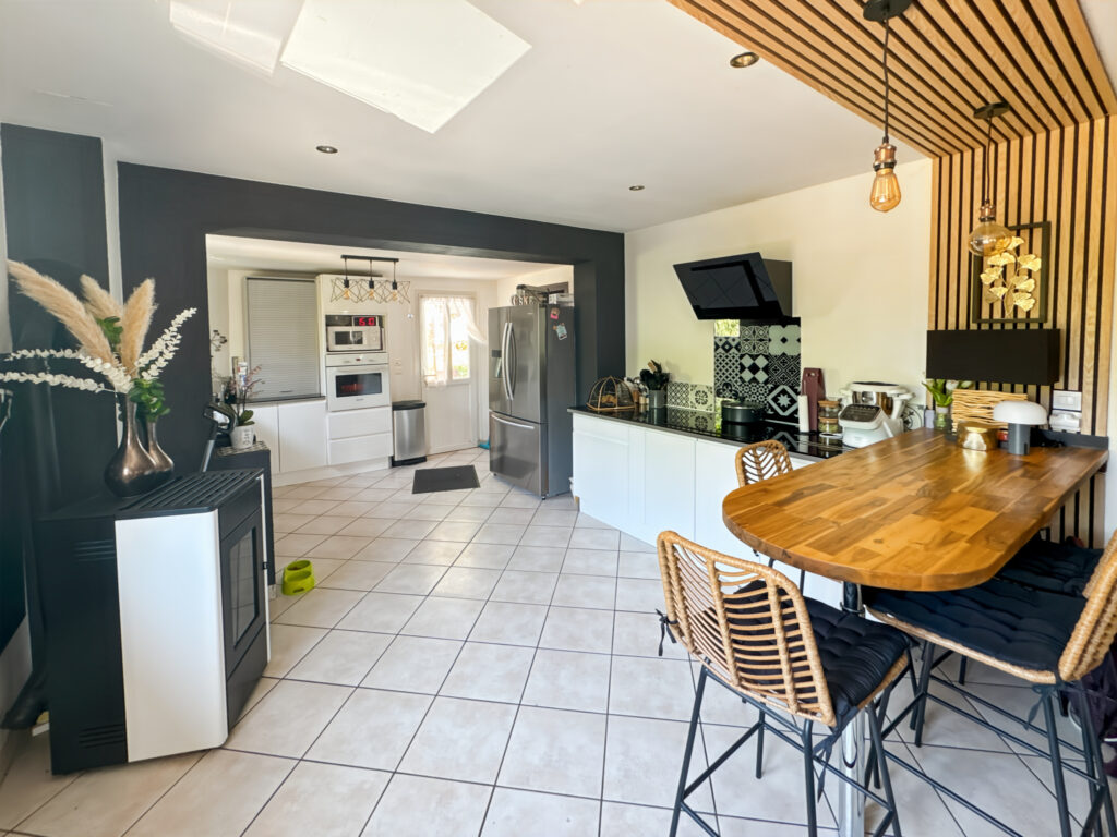 Construction à un étage – Toiture en tuiles – Charpente traditionnelle – Fenêtres double vitrage – Menuiseries PVC – Chauffage au fuel – VMC – Poêle à granulés (2022) – Tout-à-l’égout – Cave – Terrain.