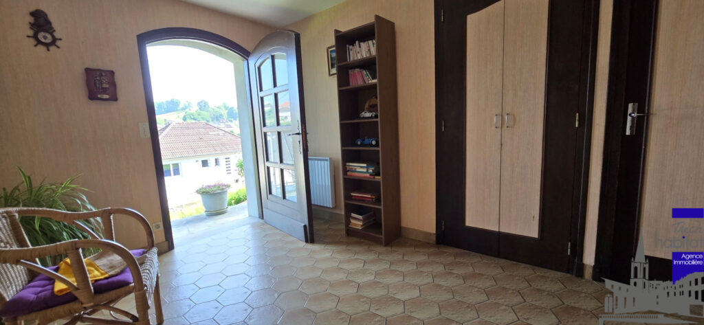 Dans un quartier résidentiel au calme, cette maison profite d’un emplacement de qualité.Idéale pour une famille. Lumineuse et fonctionnelle, elle vous propose un grand hall d’entrée avec vestiaire, une cuisine et un séjour avec balcon, 3 chambres sur l’arrière, salle de bains et wc séparés. Sous-sol semi-enterré, cave. Menuiseries double vitrage PVC et stores motorisés solaires en façade, volets bois pour les chambres. Nombreux placards. Jardin tout autour de la maison partiellement fleuri, vue dégagée en façade, vue sur les prés depuis les chambres. Energies tout électrique. Assainissement collectif.