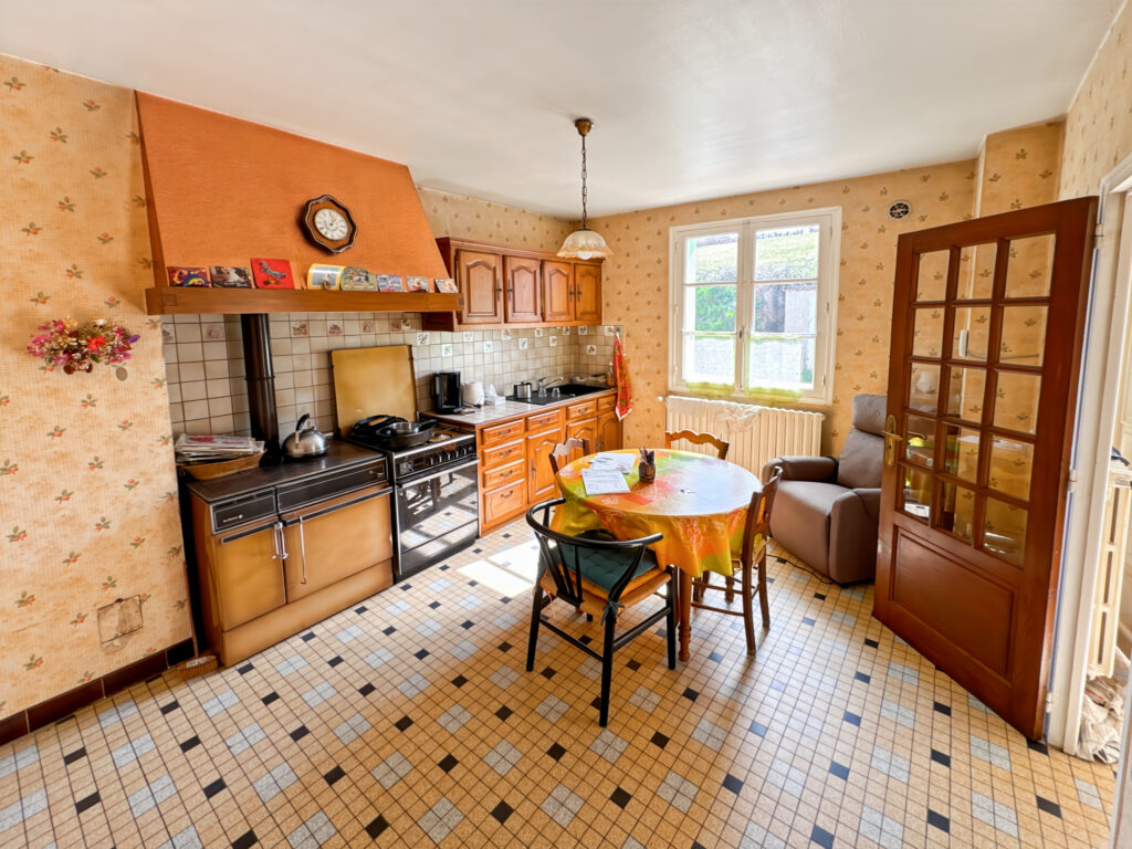 Au rez-de-chaussée : entrée, dégagement couloir, une cuisine, un salon, une salle d’eau, un cabinet d’aisance et trois chambres.