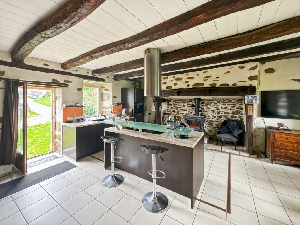 Construction en pierre à un étage – Agrandissement effectué en 2018 – Toiture ardoises, tuiles et bac acier – Isolation intérieure – Charpente traditionnelle – Poutres apparentes – Pierres apparentes – Fenêtres double vitrage – Menuiseries PVC – Fenêtres de toit – Insert à bois – Convecteurs – Ballon d’eau chaude – Fosse septique – Terrain – Cave – Buanderie – Dressing – Grange – Atelier – Piscine – Four à pain.